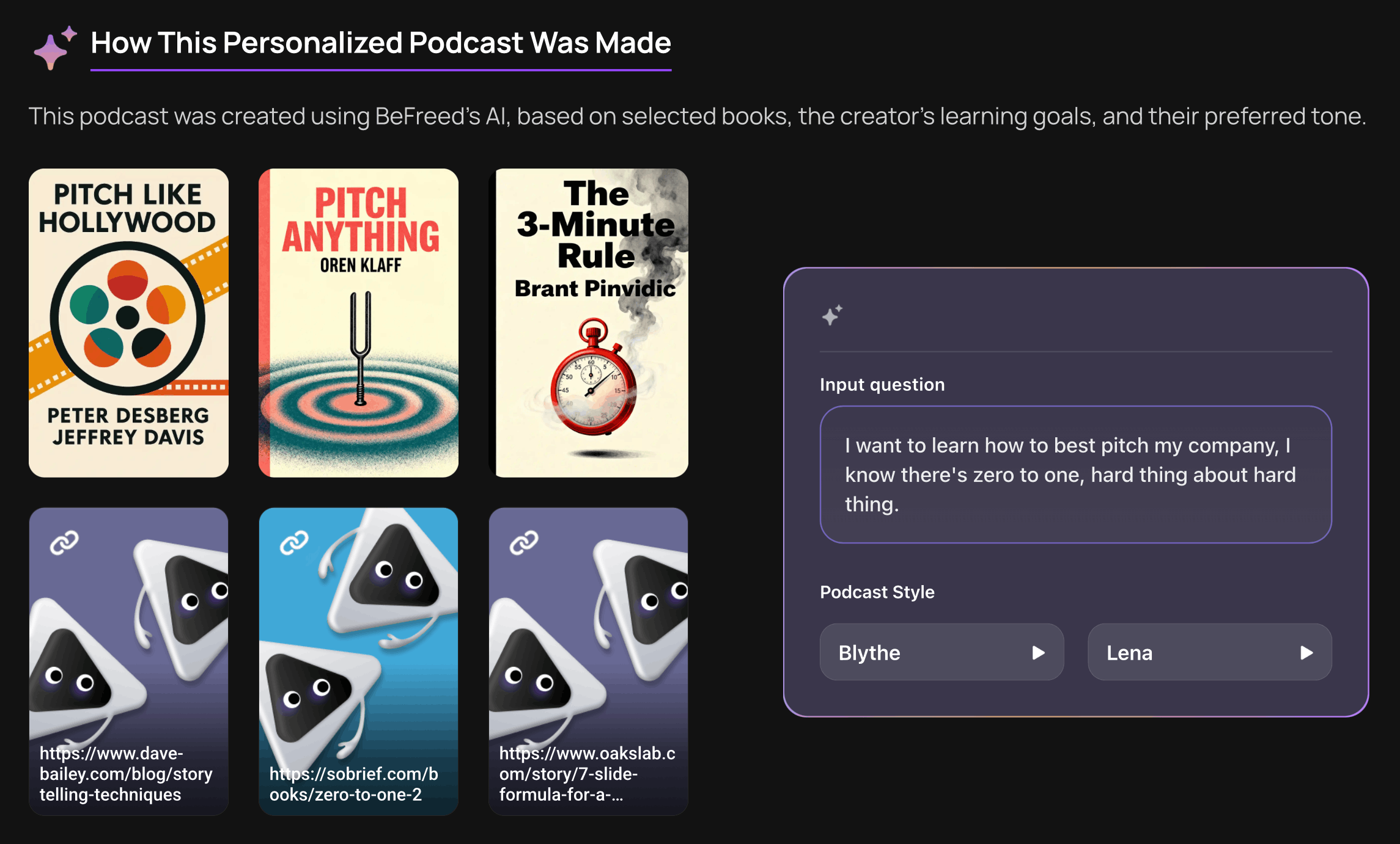 Where I think the app really shines is the ability to summarize the learnings from different books and then merge them together into a single unique podcast with the best of all.